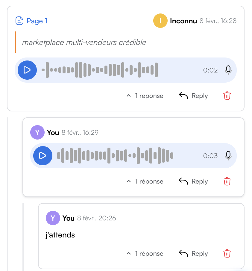No need to type a long message. Record a voice comment on any passage. Your team listens in context.