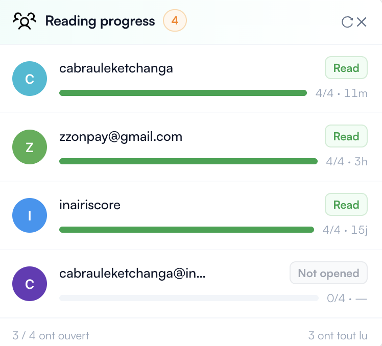 Real-time reading tracking, time spent, scroll depth, actual activity. Not just "opened". Actually read.